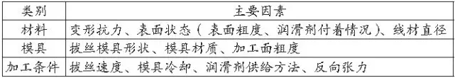 表1 影响拔丝加工生产效率和拔丝质量的主要因素