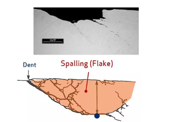 上图:根据Hertz原理,轴承Z大受力点为表面以下0.008到0.0012英寸