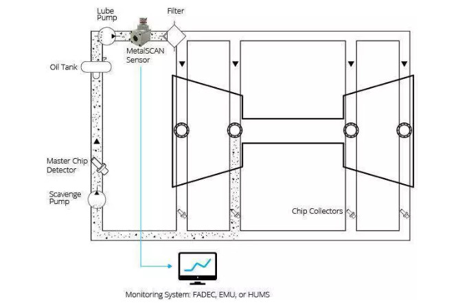上图:GASTOPS公司的Metalscan MS1000滑油碎屑监控系统图