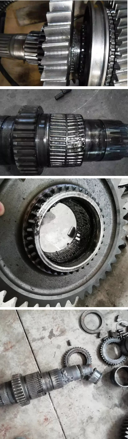 变速箱正常工作时,变速器的轴和齿轮高速转动,可以把变速箱内的油搅动起来,为变速器提供充分的润滑。但是当车辆在拖行时,如果挂空挡,传动系依然连接,那么变速箱中的齿轮只有主轴在高速旋转,中间轴齿轮和主轴齿轮并不旋转,导致变速箱中的油甩不起来,润滑不充分,局部高温导致严重损坏。施救时后轮旋转,通过传动轴等,不断地将动力输入变速箱的主轴。主轴上的轴承及齿轮内孔等配件,因齿轮油到达不了摩擦副表面,导致损坏。