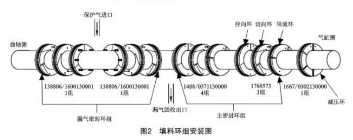 (2)加强检修质量把关,确保填料环组正确安装后,防止杯槽串动。活塞杆回装时,应重点防止活塞杆尾端专用工具对填料环组造成的磕碰损伤。