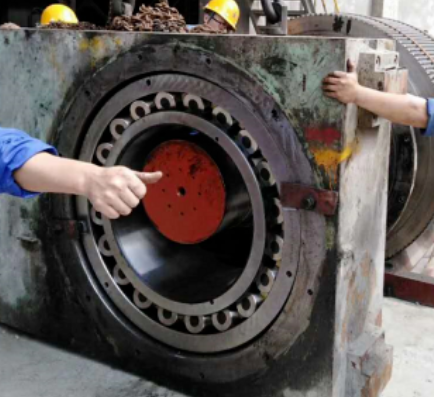 辊压机是低速重载设备,且由于料层的不稳定性,还长期处于振动载荷工况下,由于工况的异常、两辊还会出现偏斜等状态,这就需要轴承必须具备较高的载荷能力,抗振动冲击能力,和良好的调心效果,内部在这些异常工况下,不产生额外的摩擦热,尤其是滚动体和保持架的接触,不能产生额外的磨损。当轴承质量和精度不佳时,便会产生异常的接触和磨损,导致温升异常,甚至剥落,断裂等重大事故。