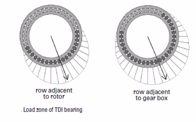 (图中英文注释:load zone comparison承载区比较; row adjacent to rotor – 靠近转子的一列;Row adjacent to gear box – 靠近齿轮箱的一列)