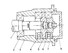 1.蜗杆;2.密封盖;3.盘根;4.端盖;5.隔套;6.骨架式油封;7.轴承座;8.轴承