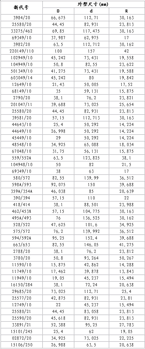英制圆锥滚子轴承的结构及装配尺寸精度和旋转精度不同于公制轴承,多用于进口机械或特殊需要的行业,外型尺寸及公差以英制单位表示,适用于英制(一般是以英寸inch为单位)尺寸的装置。比如TIMKEN英制圆锥滚子轴承是指其外形尺寸均按英寸为单位进行度量的圆锥滚子轴承,源于英美国家。其结构型式亦有单列、双列、四列等多种,工作性能与相应的公制圆锥滚子轴承是相同。英制轴承以英制单位表示轴承的外型尺寸、公差,适用于英制尺寸的装置。英制轴承适用于各种英制尺寸的工业机器、小型回转机器等。