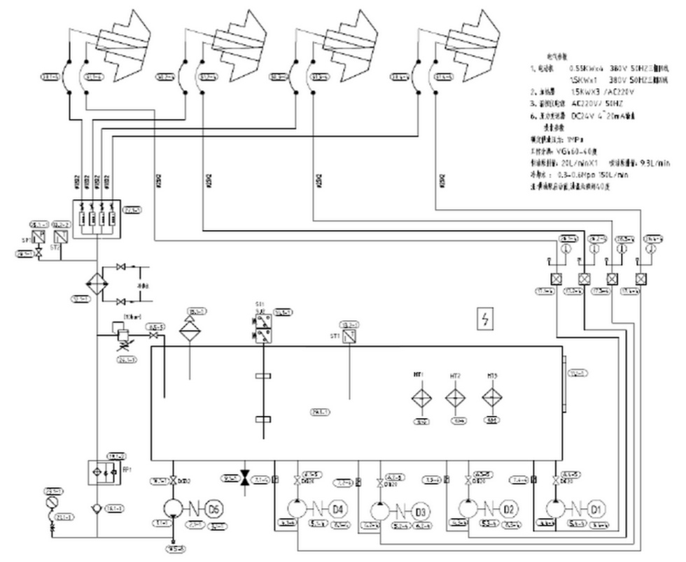 HYRM3618采用地面油站油站单独润滑。在正常工作状态下,由于磨辊工作时处于倾斜状态,轴承一侧全部浸入油中。如图所示,在地面油站的润滑油泵的介入下,磨辊供油管始终在一定的压力下循环不断的向磨辊内部进行供油,与此同时四个磨辊回油管出口处装有四台单独工作的真空泵进行回油的循环,防止润滑油循环不畅,对磨辊轴承造成伤害。