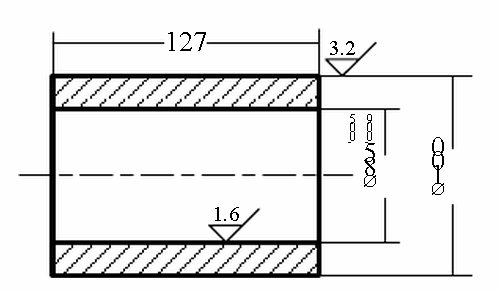 风叶档直径是80mm,为Z小直径d值,轴承档直径是95mm,可镶套的单面厚度为7.5mm,取单面5mm,钢套材料选用45号碳钢,厚度不小于7mm。将连轴承档到风叶档之间车至85mm,等待镶套,采用Jb3配合公差。